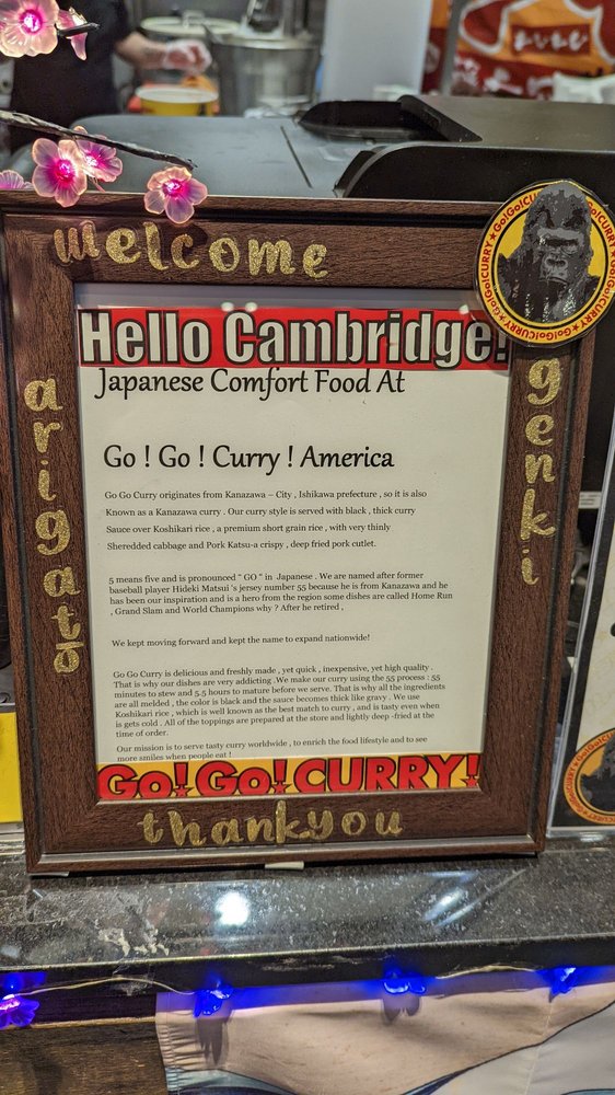 Located in H Mart, Go Go Curry Cambridge brings a taste of Kanazawa-style curry to the heart of Cambridge, MA. Specializing in comfort food, this vibrant eatery is perfect for both quick lunches and leisurely dinners.